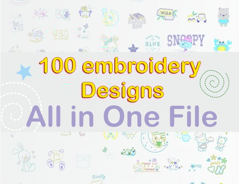 Discover our exclusive 100 Embroidery Designs Collection – a single, convenient file packed with 100 vibrant and unique patterns.